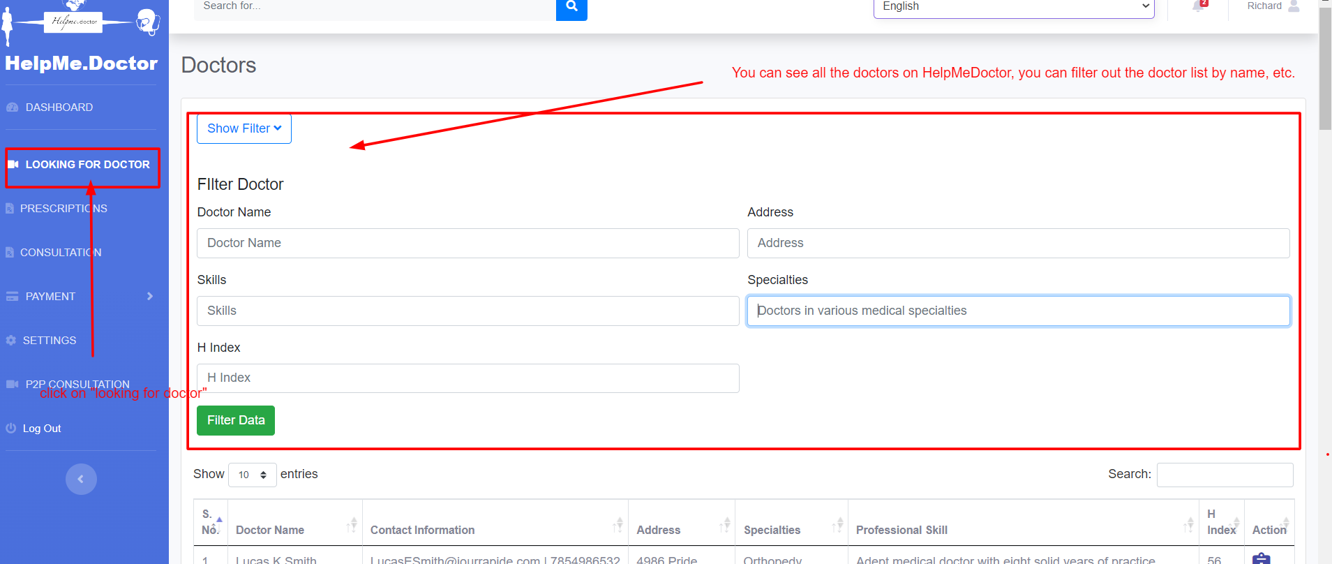 3. Search for doctors according to your problem if you want you can filter the list
